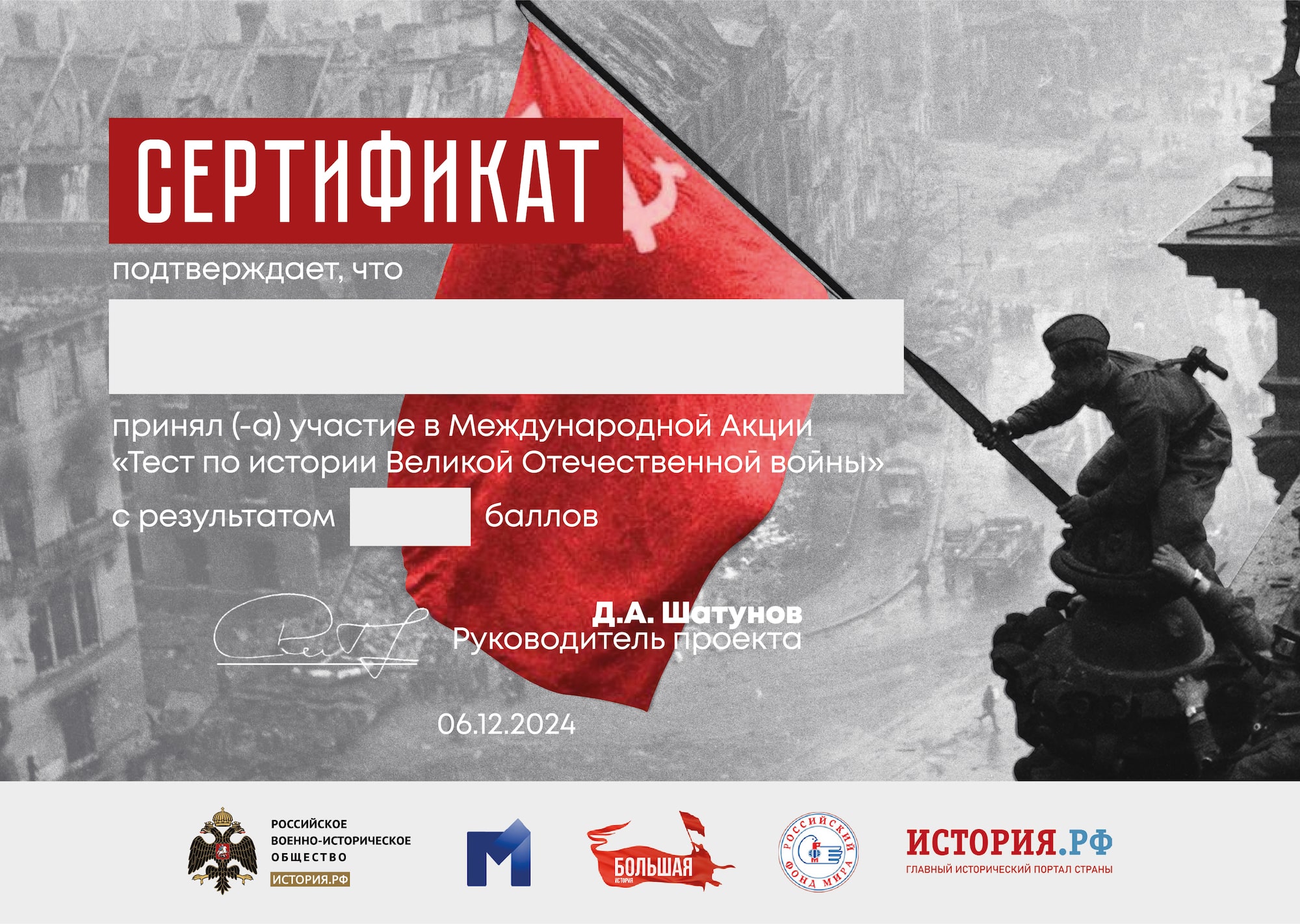 Приветствуем тебя на международной акции «Тест по истории Великой Отечественной войны»!